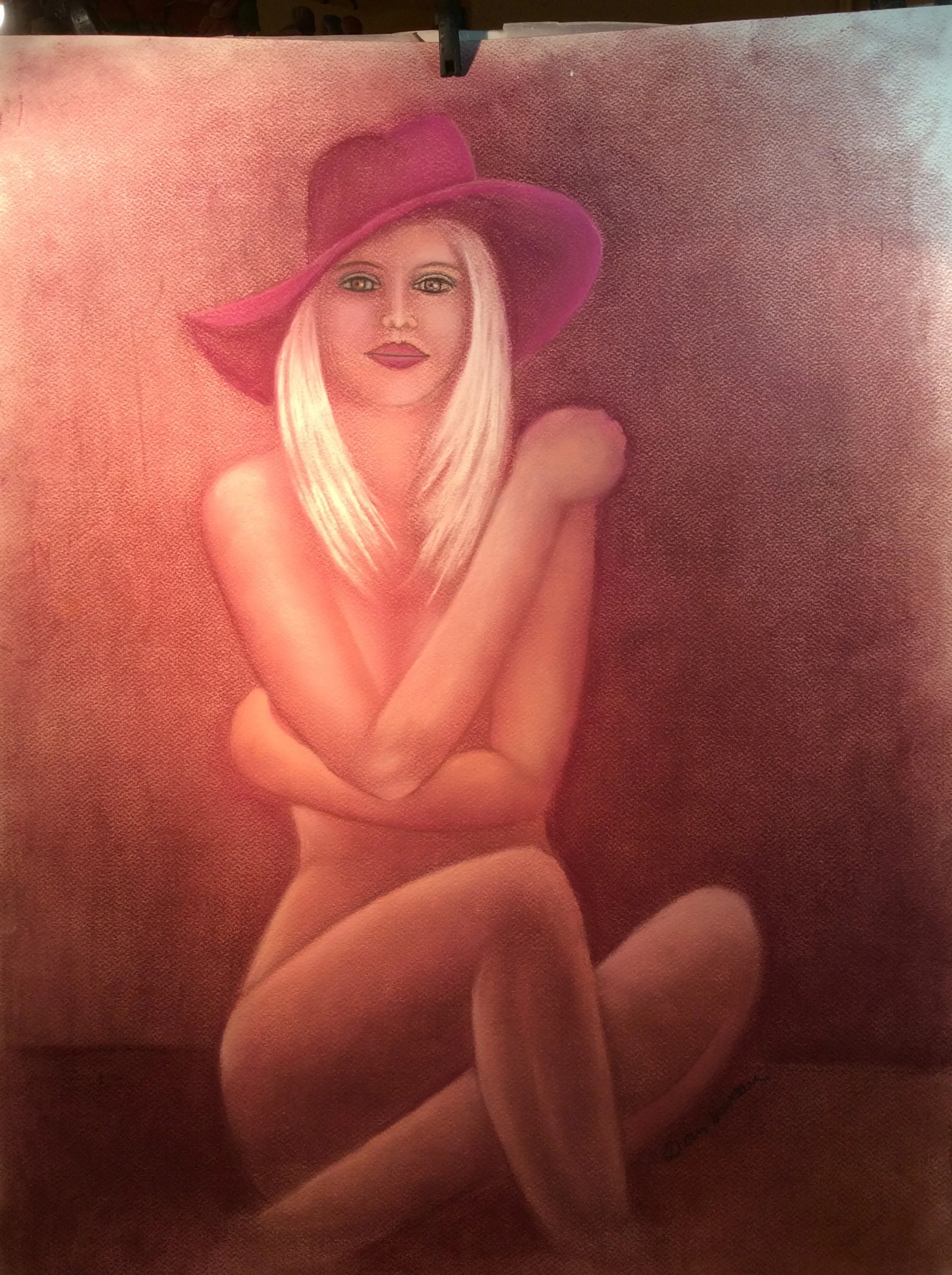 Blonde nue au chapeau rose