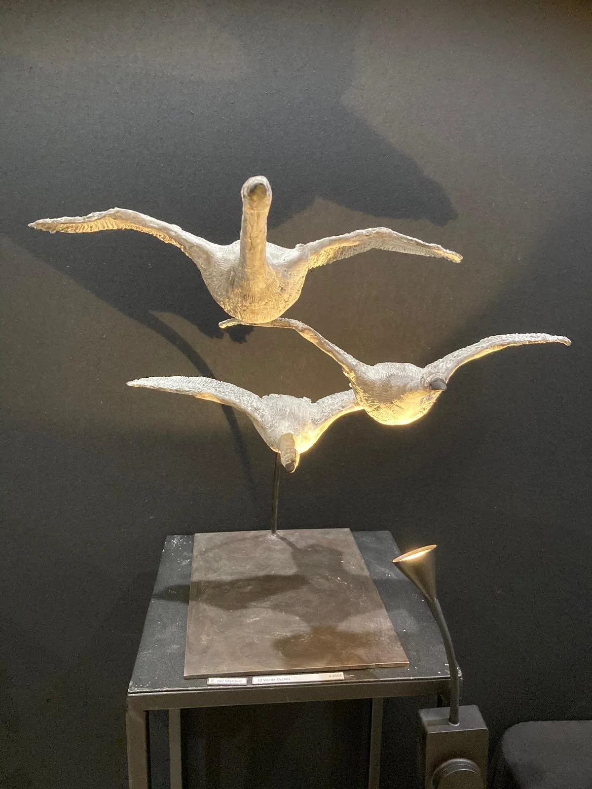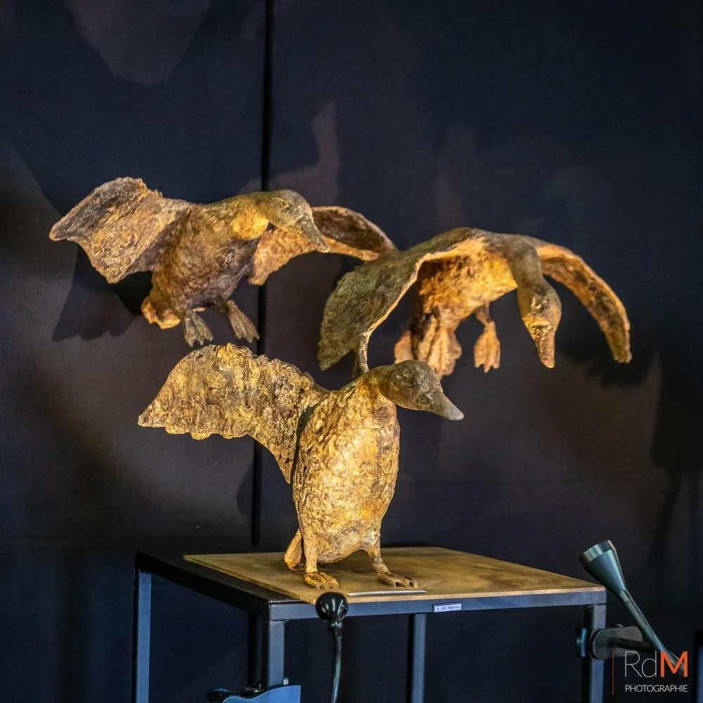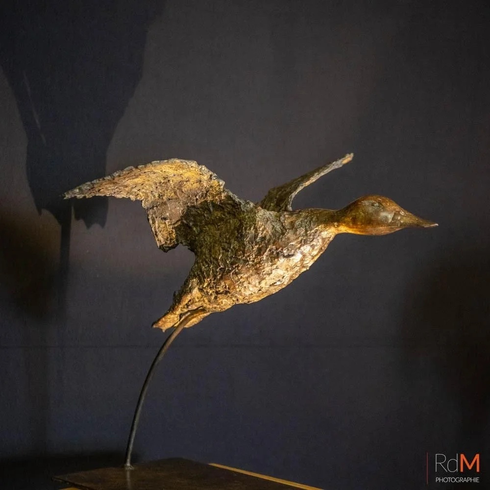 Artiste belge né en 1938, Emmanuel del Marmol découvre la sculpture à 72 ans, après une carrière de 38 ans dans les assurances. Un coup de cœur pour une sculpture en bronze le conduit à son premier atelier, guidé aussi par une rencontre amoureuse. Très vite, il délaisse les figures humaines pour se tourner vers le monde animal. Il se spécialise dans les oiseaux en plein vol, qu’il sculpte en cire avant la fonte en bronze ou résine, capturant le mouvement avec finesse et poésie.